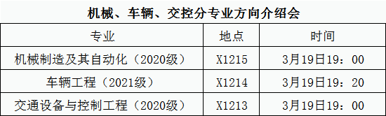 按照分专业方向工作安排,学院拟于近期开展机械、车辆、交控分专业方向工作,现将相关要求通知如下: