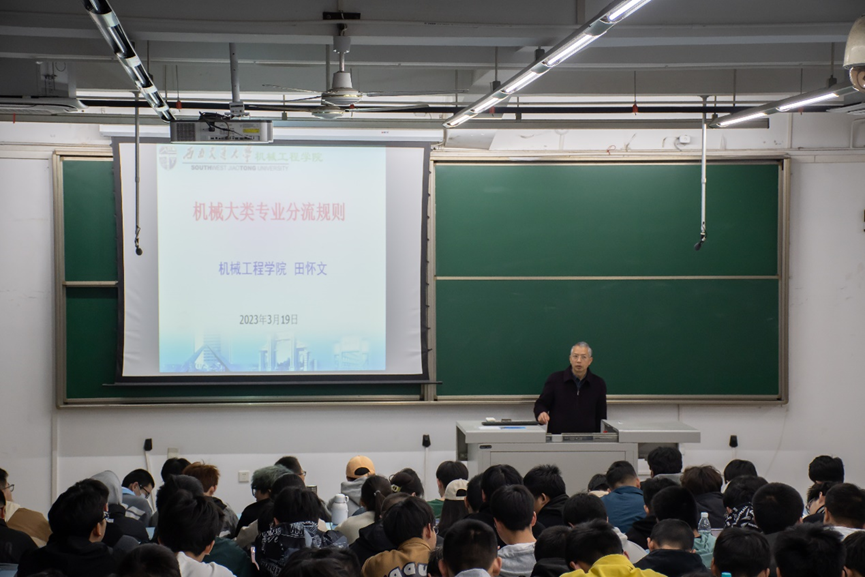 为帮助学院同学们更好地了解专业分流工作,2023年3月19日18:30,2022级机械类专业分流宣讲会在X2322召开,2022级能动类专业分流宣讲会在X2320召开。学院副院长田怀文,副院长、能动系主任刘伟群,建环系主任孙亮亮,测控系副主任曾祥光,郭鹏、马荣江等老师出席本次了专业分流宣讲会。