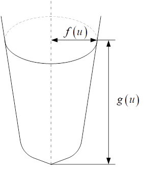 采用一般参数u,v,同胚映射到回转体曲面,v为回转体径向参数,u为高与半径关系的中间参数。