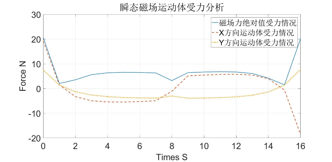 6.通过ANSYS磁场有限元仿真分析,得出磁场负刚度弹簧运动过程中的受力情况。