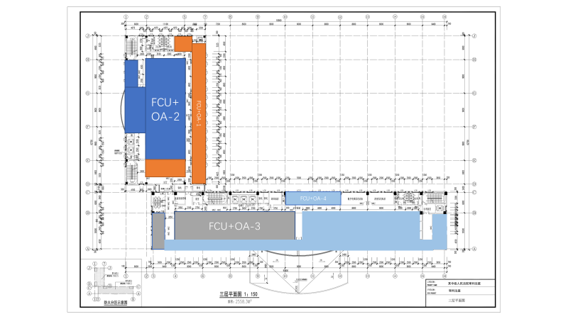 根据房间的用途,使用频率,和建筑的布局以及符合的特性进行分区,同一区域的系统形式和送风方式是相似的。三、四层(除大法庭)房间选用风机盘管加新风系统,大法庭选用全空气系统。