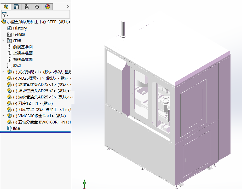 3.选定五轴数控加工机床,并利用Solidworks软件建立其三维模型。