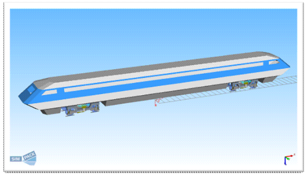 (5)建立高铁车辆动力学模型。本论文选用CRH2A拖车模型进行动力学分析,通过网络查找获取CRH2A拖车的车体和转向架的结构以及悬挂参数。在此基础上通过SIMPACK软件建立车辆动力学模型。在验证动力学模型正确性后,获取其在直线以及曲线工况上的动力学响应,并对其进行数据处理,为后续导入FEBio软件作为输入载荷做准备。