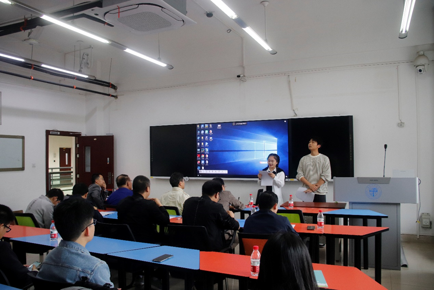 在答辩正式开始前,丁军君先在2218主持了简短的会议。会上,他强调了本次答辩的意义,交待了本次答辩的纪律与规则。随后答辩正式开始。