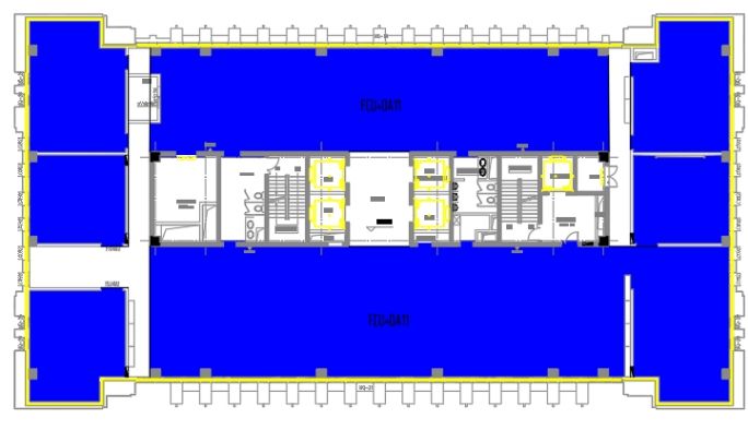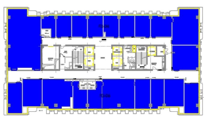 在本次设计中选取建筑B区即5-11层进行空调系统设计,该建筑4-11层中的空调区域包括会议室、办公室、开放办公区等空间,其中5-10层房间分布情况大致类似。