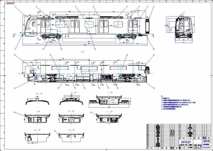 根据所查阅的资料与数据,绘制地铁车辆的结构总图图纸,为后续建模提供图纸依据。