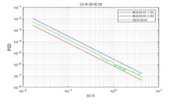 为了验证Simulink仿真结果的可靠性,以保证之后的研究是可靠的,利用功率谱密度曲线对路面激励Simulink模型进行验证。功率谱密度的表达式为