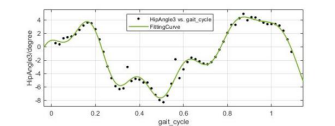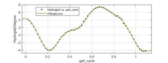 ,具体到单一拟合曲线,n的取值可单独讨论。表征髋关节三个自由度、膝关节一个自由度、踝关节一个自由的CGA曲线拟合如下: