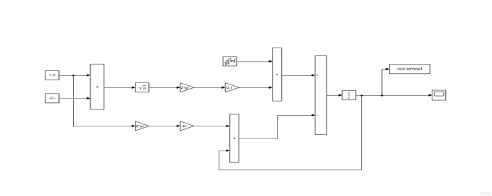 为输出的路面激励。在Simulink环境中进行相应的调参与模块布置,可以构建出模拟随机路面的系统,如下图所示: