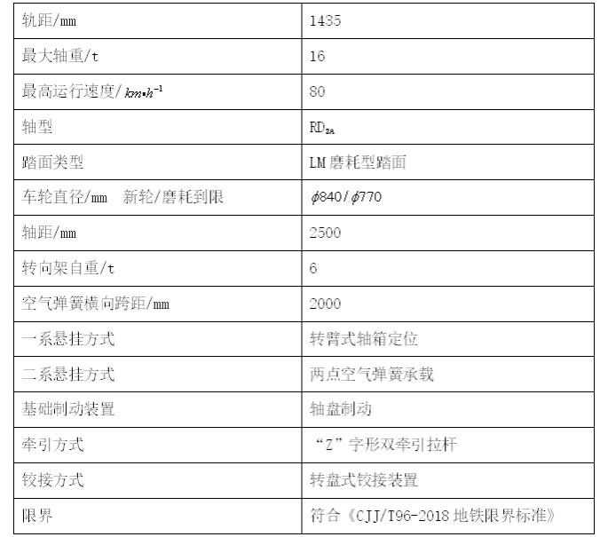 (8)转向架主要技术参数