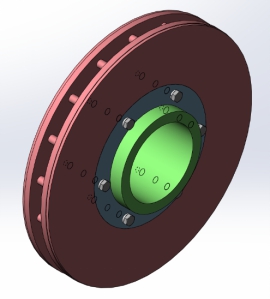 本设计综合考虑制动要求、盘形制动优点和非动力转向架部件相对位置选择使用轴盘制动。轴毂过盈配合安装在轴上,盘体和盘毂之间通过螺栓连接,可拆卸,在盘体经过磨损后,能够更换轴盘。盘体材料为灰铸铁,盘毂材料为合金钢,盘体外径640mm。