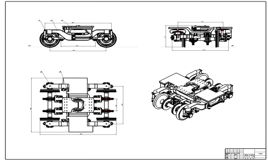 1.完成图纸绘制,在SolidWorks中初步完成转向架总体方案图A0和构架A0图绘制,再用Cad进行标准化修改。