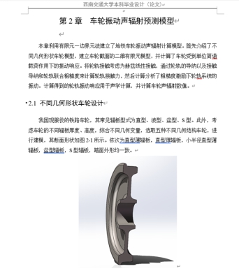 2.根据计算结果,分析并总结出不同几何形状车轮对车轮振动声辐射的影响,并将结果整理至论文中,完成毕业论文剩余部分的撰写。