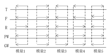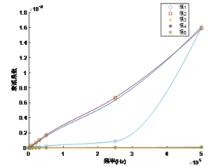 由电流变换矩阵Ti可以得到电流的5个模量在牵引网上行五相线路T、F、R、PW、GW中的传播路径,如图2所示。由MATLAB计算得到接触网各模量的衰减系数和相位速度,见表1。根据各模量的衰减系数和相位速度频率特性如图3、4所示,选择适合于测距的模量。