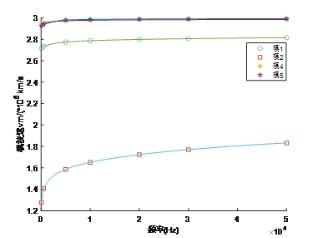 图3 衰减系数α的频率特性 图4 相位速度v的频率特性