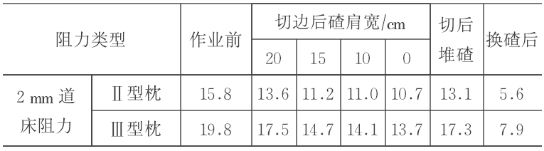 表1. 切边前后道床纵向阻力比较