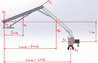 图8. 第6极限工位首段机械臂受力分析
