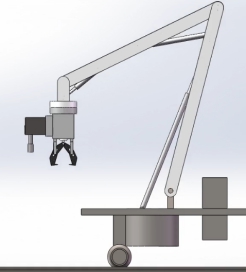 根据工况确定机械臂将使用三臂结构,基座使用液压马达控制旋转,末端机械手由液压马达控制旋转,液压缸控制夹取。