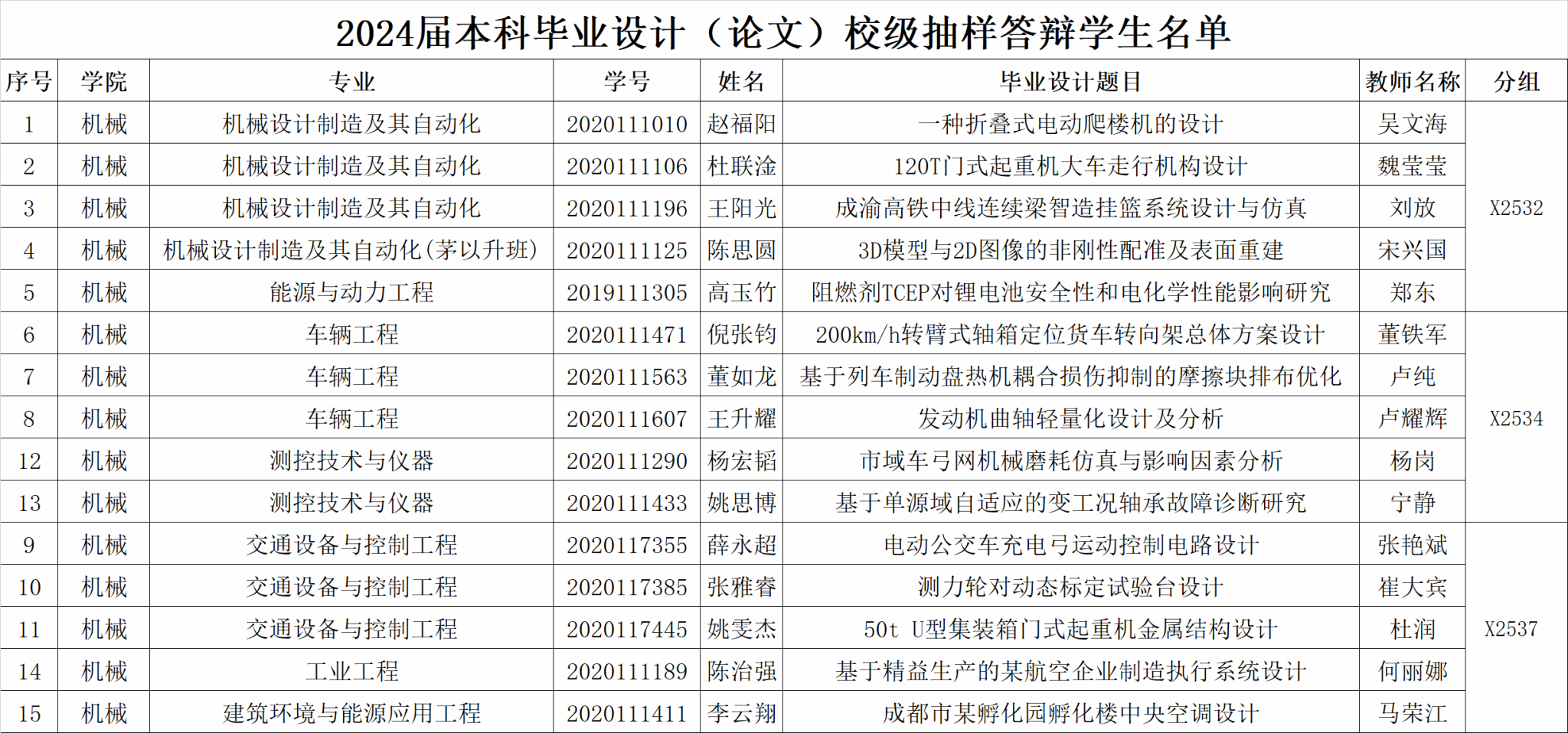(3)请校抽样答辩学生5月22日之前将答辩ppt交由指导老师审阅,5月22日12:00前将答辩PPT和论文发送至学院邮箱jxbkjw@swjtu.edu.cn。