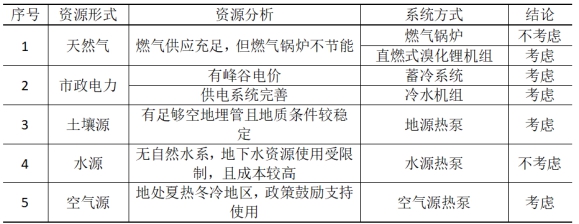 (3)建筑冷热源系统选择:对建筑周围可用能源进行分析,确定可使用能源类型并对其进行组合,冷热源系统形式统计表如图3所示,通过技术性分析与经济性分析考虑使用水蓄能系统+地源热泵。