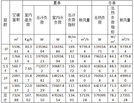 (2)建筑物的负荷计算:根据建筑物内各项参数,对冬夏季工况空调进行计算,按夏冬两季分类内容包括人员、设备、照明、新风、围护结构等室内冷热负荷,为之后冷热源方案选型、空调系统设计提供数据支持。