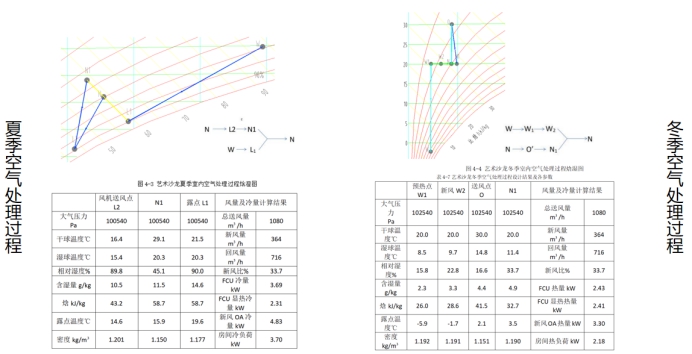 图5. 艺术沙龙FCU+OA系统空气处理过程计算结果