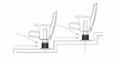 (5)气流组织计算:选取地下一层艺术沙龙、131人报告厅和一层序厅为案例,分别对散流器送风、座椅送风、条缝送风和喷口送风进行气流组织设计计算,座椅送风方式送风示意图如图6所示。