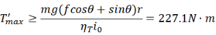 ②发动机单独驱动时以低速、45%最大爬坡度为目标确定发动机所需最大功率