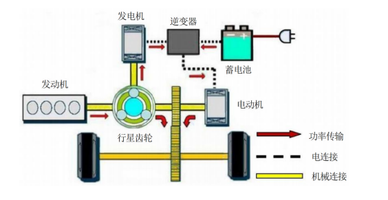 此外,混联式驱动系统并非简单的串联或并联结构,而是实现了两种驱动形式的有机融合。通过行星齿轮机构的精确动力分配,系统可根据实际工况灵活调整动力传输路径,从而实现能量利用效率的最大化。这种独特的结构设计不仅提升了系统的整体性能,还为混合动力汽车的动力匹配提供了更优的解决方案。