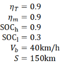 (3)对于电池而言,初步确定纯电续航里程为150km,平均车速为40km/h,根据相关的公式计算得出。