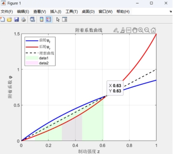 4.针对制动比与同步附着系数编写matlab程序生成附着系数曲线