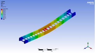 回答:由于做主梁的有限元法分析时,简化了覆盖在枕梁上的梯板结构,因此在实际情况下,工程车辆载荷所作用在枕梁上的受力分布应该更加均匀。当前载荷下,40m跨距栈桥的最大变形为43.851mm,变形量在正常范围内。尽管部分网格质量偏低,求解的结果也与相关参考资料较为吻合。