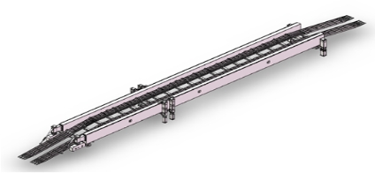 (2)基于时速350kph高速铁路隧道的断面图,完成隧道的三维建模。基于隧道的断面尺寸,确定栈桥的结构参数,并完成栈桥各结构的设计与三维建模。通过栈桥的装配体模型和隧道三维模型,进一步了解栈桥的工作过程,确定有限元仿真分析的研究思路。