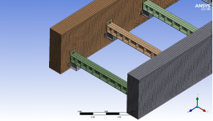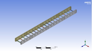 对栈桥的主梁和枕梁进行单独装配,在SOLIDWORKS中对主梁枕梁的装配体进行优化,考虑分析的准确和效率,合理的优化了栈桥的三维模型的结构。将三维模型导入Design Modeler中进行部分结构的切割拆分调整。在Mechanical中对栈桥使用自动方法进行网格划分,并调整网格尺寸。