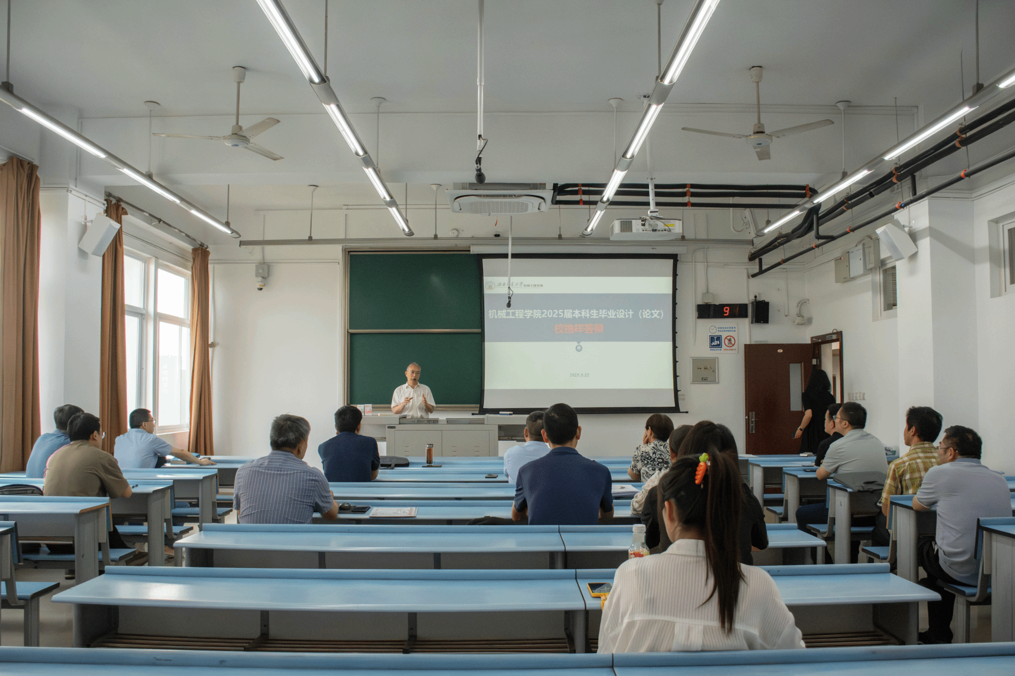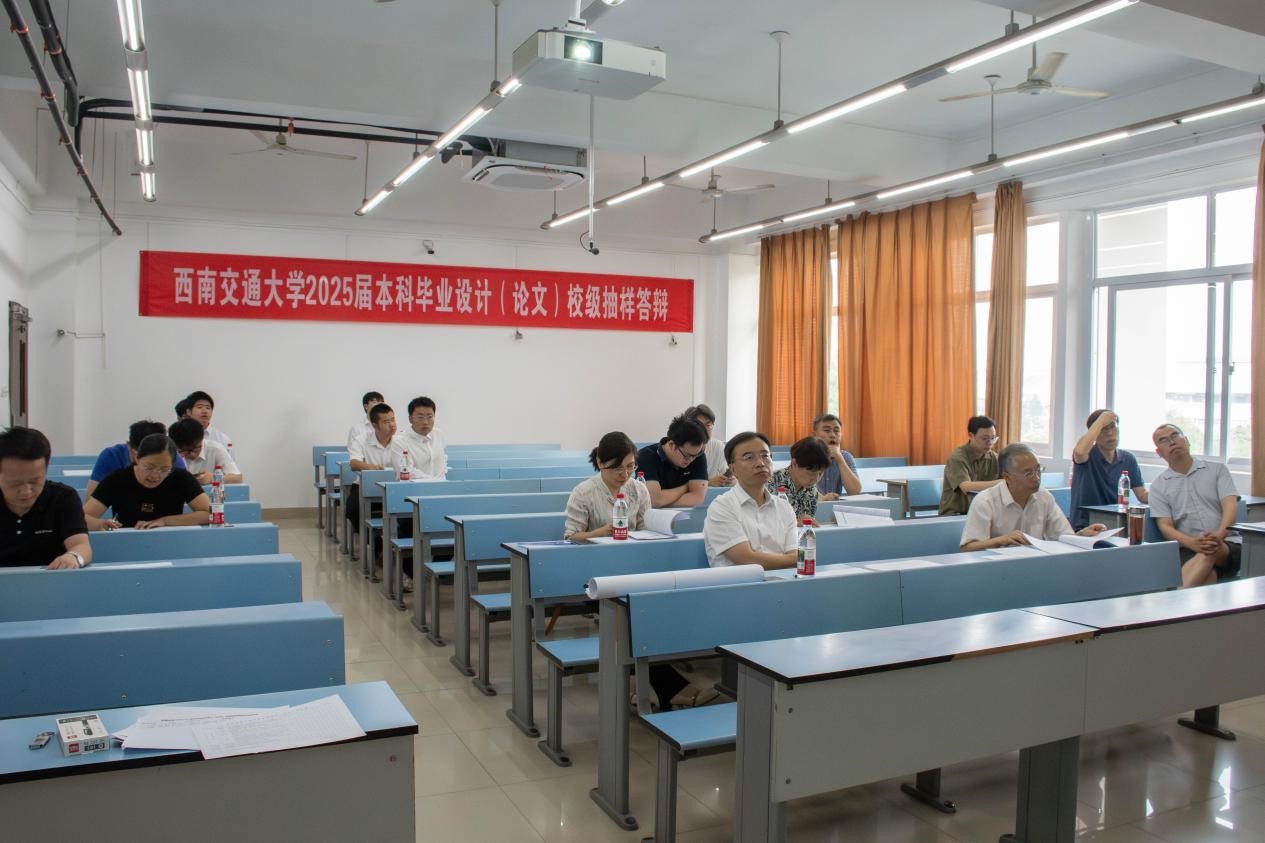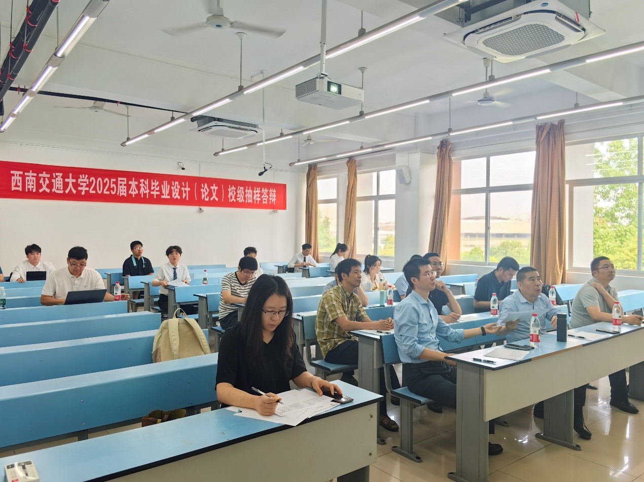 2025年5月22日上午,球王会体育本科毕业设计(论文)校级抽样答辩在犀浦校区2号教学楼举行。学院党委书记袁艳平,院长钱林茂,副院长田怀文,本科质保委副主任杨美传,质保委员秦萍以及各系所主任、抽样答辩学生毕设指导教师出席本次答辩会。