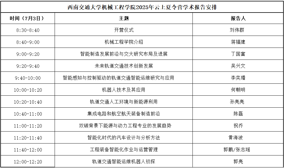 7月3日上午8:30开始,全体营员通过QQ群课堂(QQ群号:901029991)线上参加,具体安排如下: