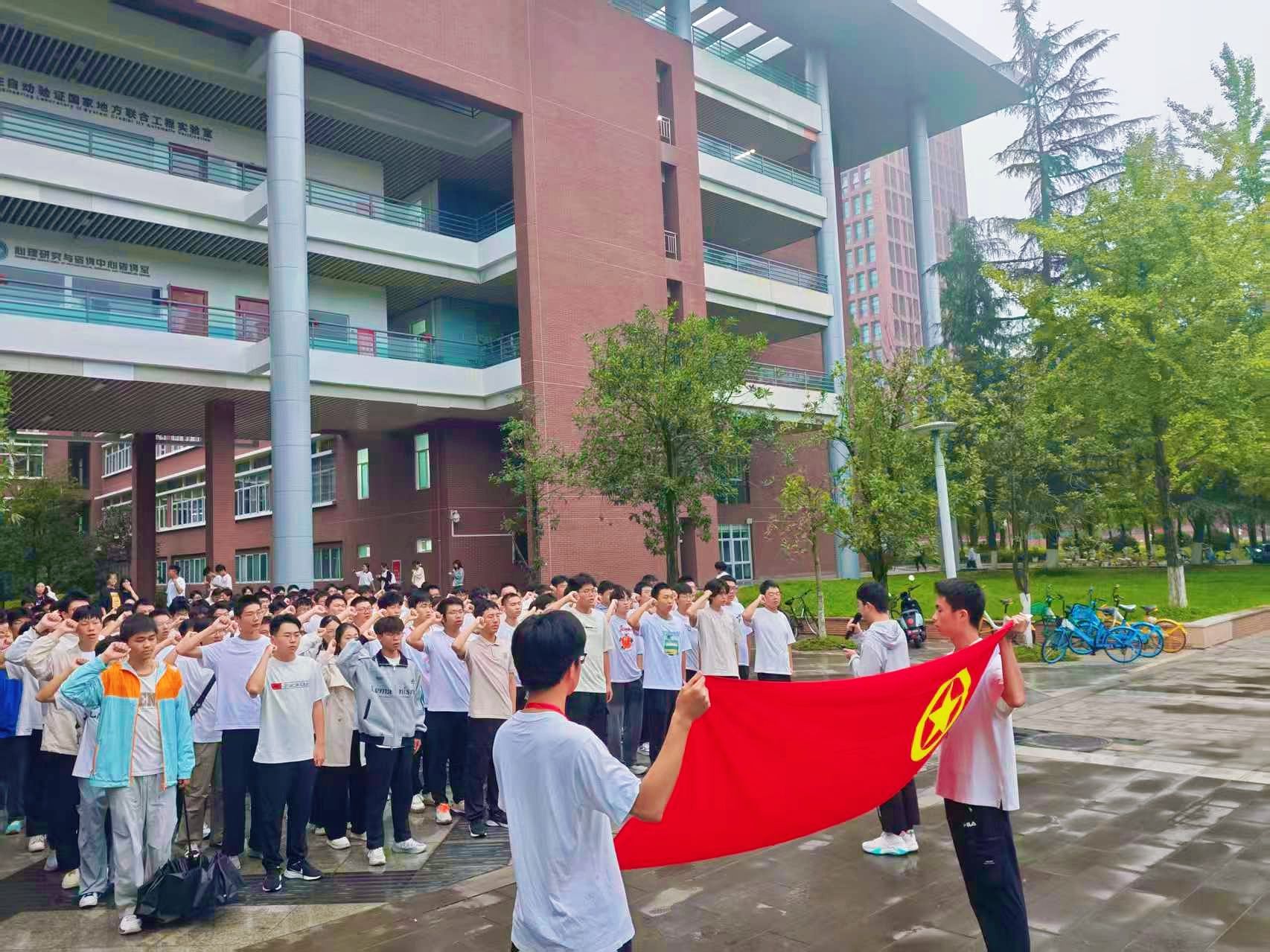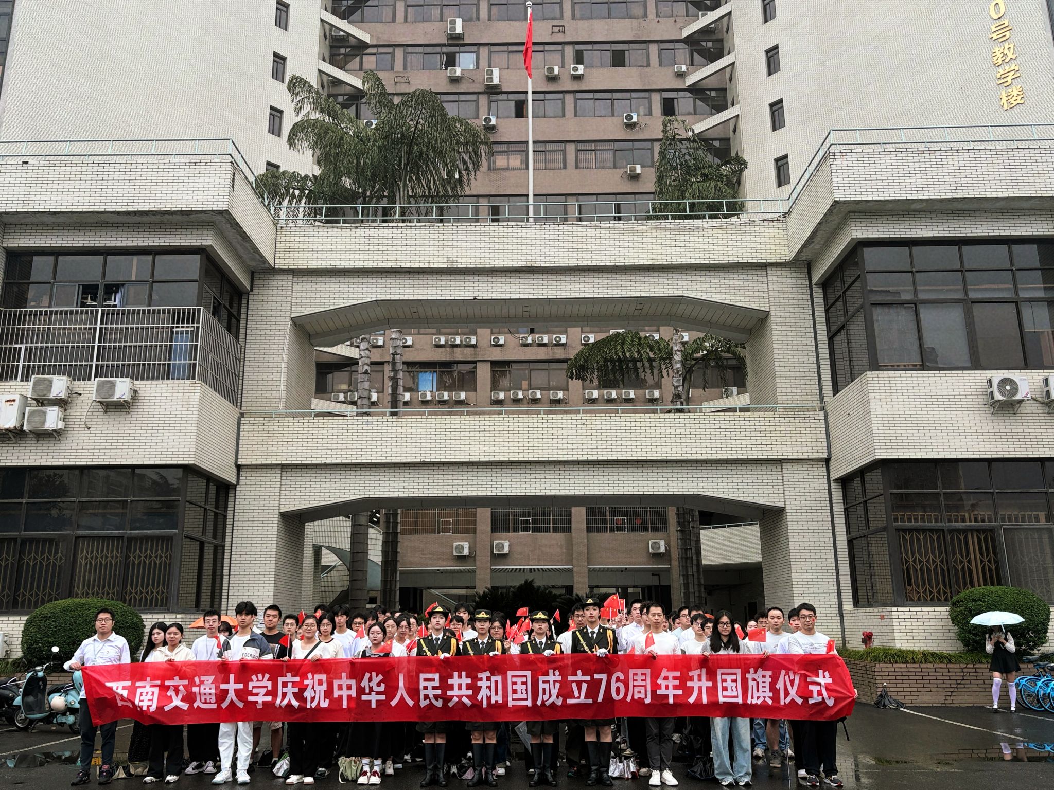 为热烈庆祝中华人民共和国成立76周年,深入学习贯彻习近平总书记在纪念中国人民抗日战争暨世界反法西斯战争胜利80周年重要讲话精神,进一步加强新时代爱国主义教育,激发广大师生的爱党爱国爱校热情,10月1日上午8:30,学校在犀浦校区东门国旗台和九里校区南门0号教学楼国旗台同步举行升国旗仪式。球王会体育党委副书记沙晓雪、团委书记何蕊芯与青年教师代表到场,共同见证了这一庄严时刻。
