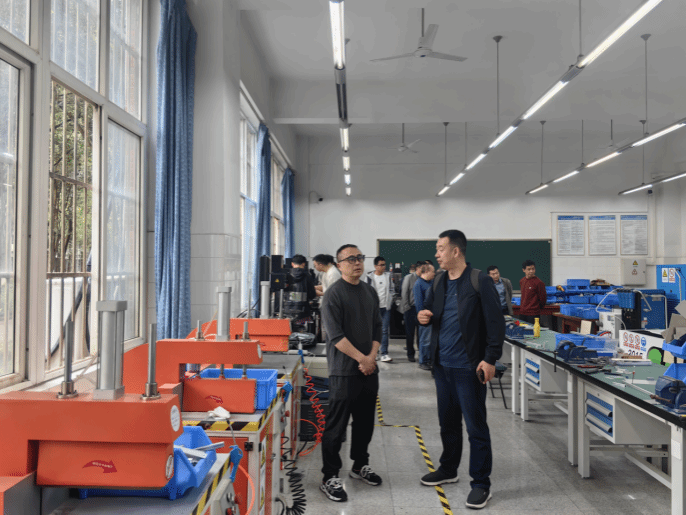 会后,在田怀文带领下,窦建明一行参观学院机械基础国家级实验教学示范中心和球王会官网装备智能制造产教融合示范中心。